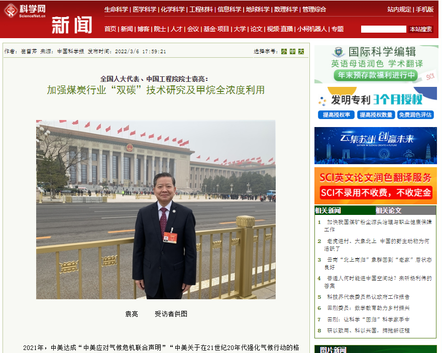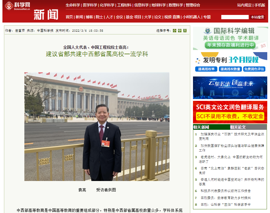 中国科学报科学网持续报道袁亮院士两会提案: