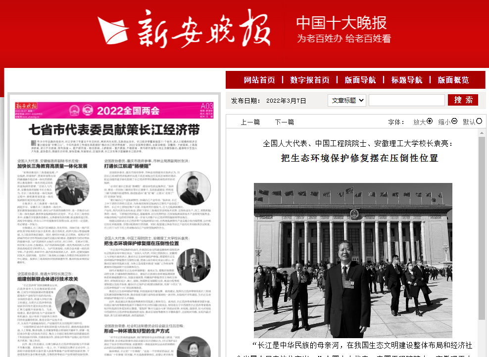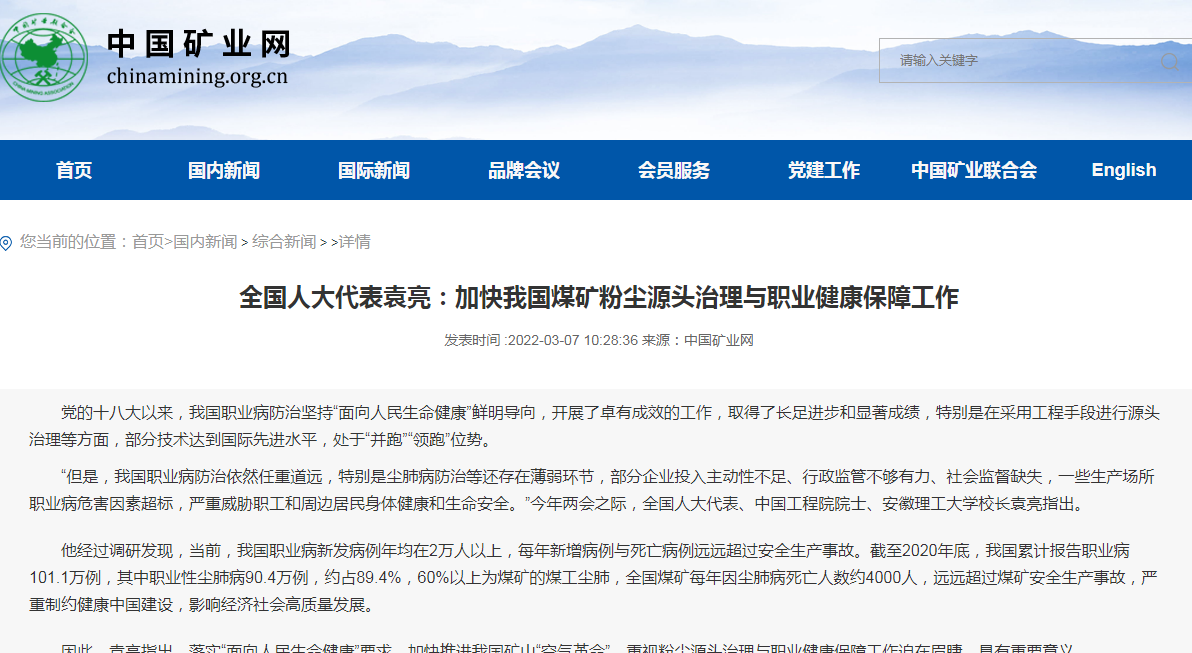 在今年全国“两会”上,袁亮就长江经济带建设、乡村振兴、生态环境保护、中西部高等教育发展、职业安全健康、应急管理、加强煤炭行业“双碳”技术研究及甲烷全浓度利用、重视废弃矿井地下空间开展储能与深地原位实验等高等教育等领域提出了一系列具体提案和建议,受到主流媒体及相关行业、官方协会的关注和跟进报道。