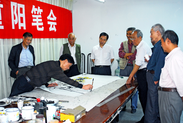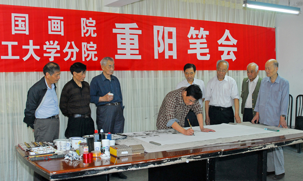 10月13日,由中国国画院安徽理工大学分院举办的“重阳笔会”在校工会活动中心第二创作室举行。校原纪委书记乔丰强,国画分院院长崔怀路,淮南市书画界名人周墨兵、龙维印、王金宏、张奎耀、廖亚辉以及十几位爱好书画的老人参加了笔会。