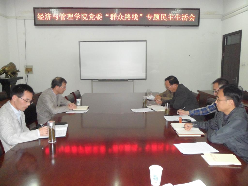 10月23日下午,经济与管理学院党委在学院3楼会议室召开“群众路线”专题民主生活会,校第7督导组组长王其东、副组长冯定昌到会指导,会议由学院党委书记崔跃武主持,学院党委领导班子全体成员参加了会议。