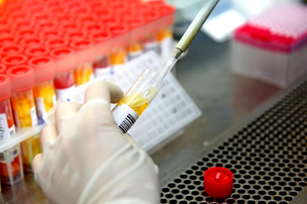 安徽理工大学第一附属医院PCR实验室内,检验人员在生物安全柜里将待检样本加入核酸提取试剂盒。