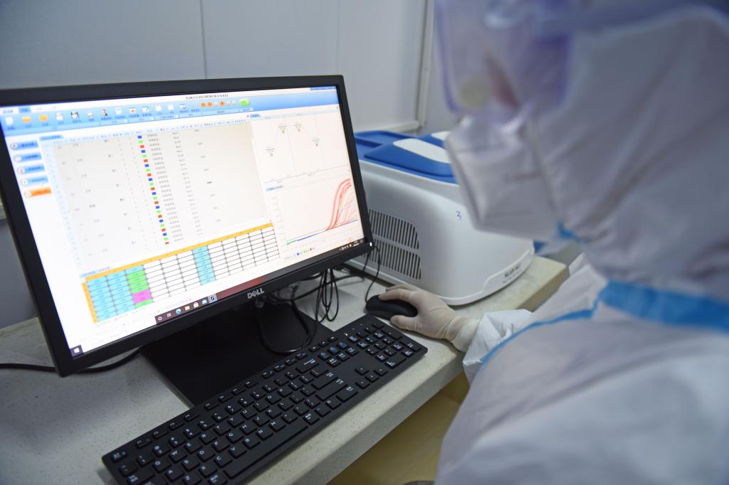 安徽理工大学第一附属医院PCR实验室内,检验人员汇总核酸检测结果。
