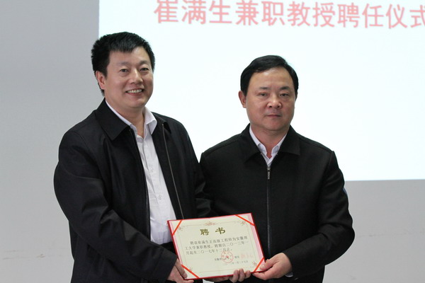 聘任仪式由殷志祥教授主持。能源与安全学院副院长石必明向与会人员介绍了崔满生的简历。能源与安全学院党政领导、发展规划处副处长陈满乾、能源与安全学院青年教师代表参加了聘任仪式。