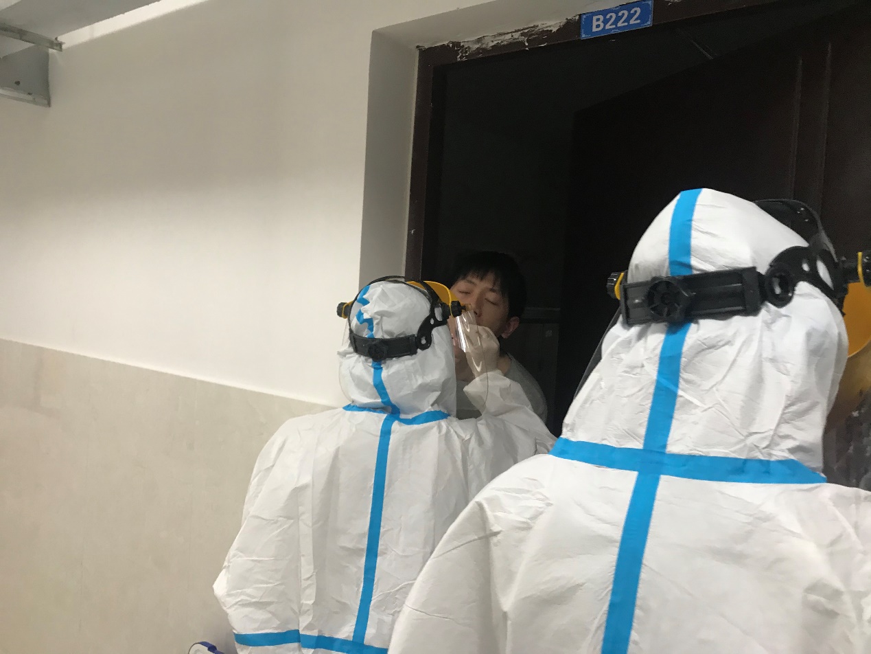 守望相助,隔离师生员工足不出户接受核酸采样
