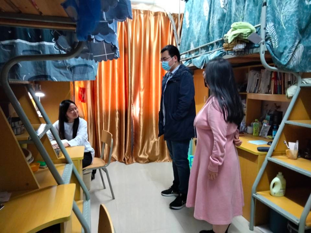 刚刚接到辅导员通知,说待会儿一起去查看女生宿舍。得知我还没有吃晚饭时,辅导员还细心地为我带来了可口的饭菜。我和辅导员一起来到仁苑4号楼,除了查看宿舍的基本卫生情况,两位辅导员还和我们一起聊天、谈心,体贴关怀,细致入微,极大地缓解了我们在疫情下的精神焦虑。