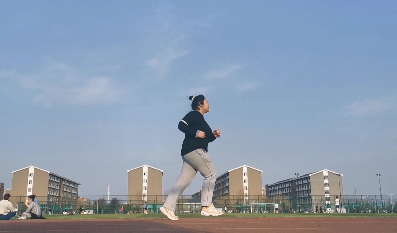 两个多小时不间断的学习后,我开始感到有点疲惫。“身体和灵魂总有一个要在路上。”我放下笔,换上运动鞋,走出宿舍楼,戴上耳机,打开“宥马”运动,开始慢跑。操场上有很多和我一样在运动的小伙伴,耳机里的音乐缓缓流淌进我的脑海,脚下的步伐未曾停歇,望着夕阳与蔚蓝的天空。此刻,我觉得生活非常美好,我坚信,众志成城,战疫必胜!