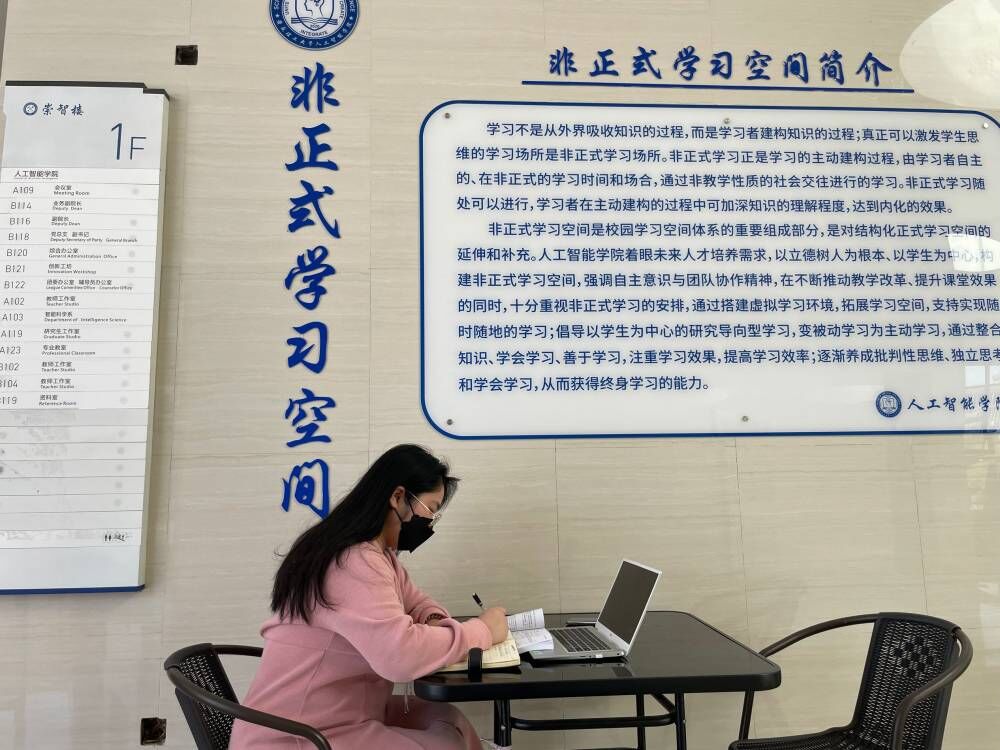 因为没有课程安排,这段时间是我的自由学习时间。我戴上口罩来到学院楼的非正式学习空间,找到空位后坐下学习,备战2023年研究生考试。在非正式学习空间里,同学们都自觉保持距离,戴上口罩,安静认真地学习。闭上眼仔细听,笔尖在纸张上滑动的沙沙声,电容笔触击平板的哒哒声,纸张翻页的哗哗声,构成了一种令人安定舒心的美妙交响乐。