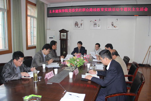 10月22日下午,土木建筑学院党委在土木楼2楼会议室召开了党的群众路线教育实践活动专题民主生活会。校督导组成员、校党政办主任张海军、校党委组织部副部长冯定昌到会指导。学院党委领导班子成员参加了会议,会议由学院党委书记盛真主持。