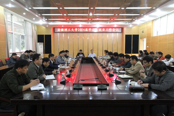 10月29日下午,学校在新图书馆1楼北会议室召开2014届毕业生就业工作会议,认真总结2013届毕业生就业工作,理清思路,明确任务,全面部署2014届毕业生就业工作。校长颜事龙出席会议并讲话。校党委副书记王洪主持会议。