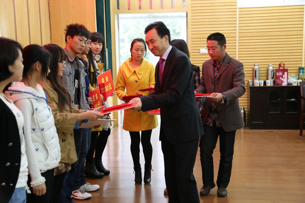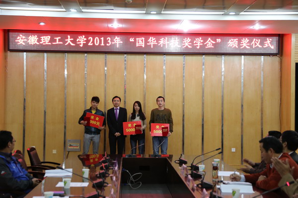张明旭对北京国华科技集团有限公司设立“国华科技奖学金”,以及一直以来对学校的支持和帮助表示由衷的感谢。他以赵树彦董事长的优秀事迹勉励同学们要志向远大,刻苦学习。以本专业为荣,将本专业作为日后就业、择业的根本,努力在专业领域内开创自己的天地。张明旭要求同学们戒骄戒躁,脚踏实地,将所学的专业理论付诸实践。同时要时刻怀有感恩之心,不忘母校的教育以及企业和社会的帮助。