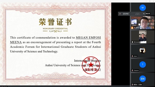报告会结束后,国际学院负责人分别向13名优秀外国留学研究生代表发放电子荣誉证书。
