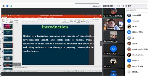 来自经济与管理学院、数学与大数据学院、地球与环境学院、电气与信息工程学院、土木建筑学院的13名留学研究生代表分别通过线上介绍、与留学生同学和参会老师互动等方式,向参会师生展示分享自己的科研成果。