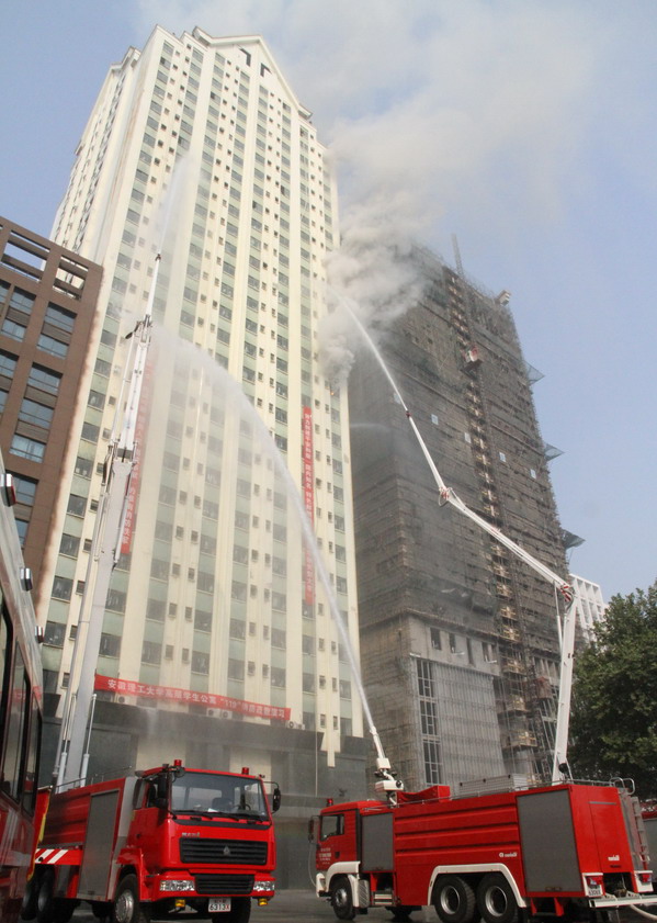 11月7日下午,学校与淮南市公安局消防支队、嘉禾物业公司联合在高层学生公寓举行消防演习。淮南市副市长、市公安局党委书记、局长张东明,学校消防疏散演习指挥部总指挥、副校长王其东,淮南市政府副秘书长李勇,淮南市公安局党委副书记、副局长叶庆才及淮南市公安消防支队政委王建东,我校各学院(部)和有关职能部门、消防支队、嘉禾物业的相关负责人等现场观摩了消防演习。