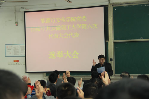 11月12日下午,能源与安全学院党委在新附2101教室召开全院党员大会,选举产生能源与安全学院党委出席中国共产党安徽理工大学第六次党代会代表。会议由学院党委书记张勤春主持。