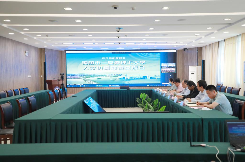 为积极响应全国高校书记校长访企拓岗促就业专项行动,有效应对疫情对毕业生就业工作带来的冲击,努力为毕业生就业搭建平台,5月20日下午,学校在舜耕苑二楼会议室采取“线上+线下”相结合的方式与铜陵市开展“访企拓岗促就业”人才供需对接交流会,校党委书记郭永存出席会议并介绍学校、推介2022届毕业生,铜陵市委常委、组织部部长郑刚出席并致辞,校党委常委、副校长董雨主持会议。