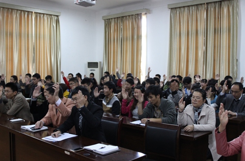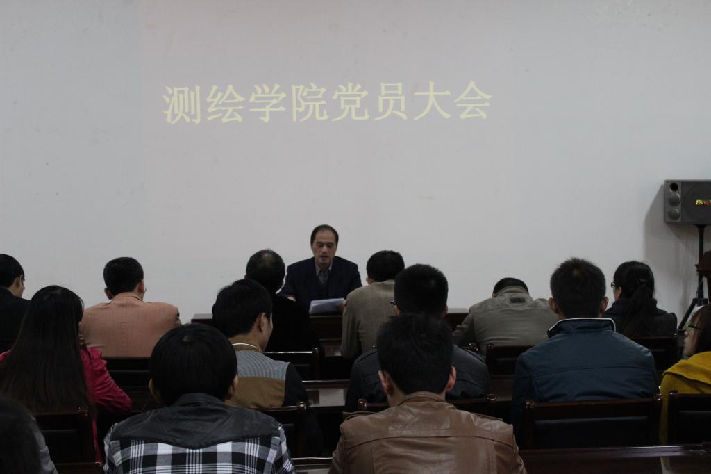 11月15日下午,测绘学院党委在学院201会议室召开全院党员大会,选举测绘学院党委出席校第六次党代会代表。会议由学院党委书记陈艺主持。
