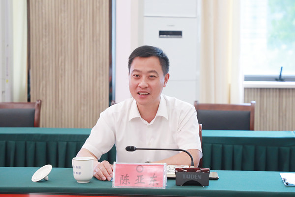 郭永存对陈亚东一行来校交流表示欢迎,从校史沿革、学科优势、科研成果、师资队伍、人才培养、“四个融入”发展战略以及专业对接产业等方面介绍了学校基本情况。他强调,校地双方有广阔的合作前景,要进一步畅通常态化联络对接机制,找准合作切入点、锚定协同发展目标,充分发挥各自优势,在人才支撑、产教科教融合、科技成果转移转化、乡村振兴等多领域开展务实合作,实现地缘相近、人缘相亲、业缘相融,开创携手发展新局面。