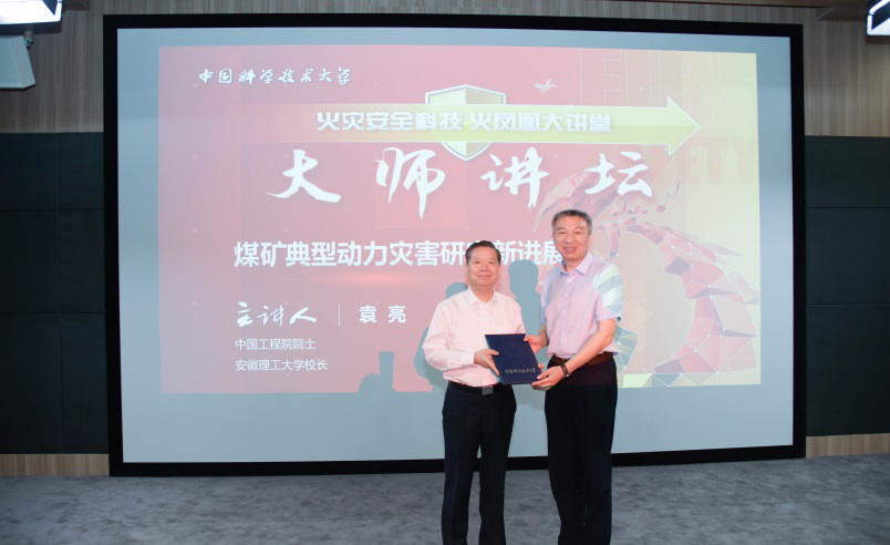 5月27日,由中国科学技术大学火灾科学国家重点实验室举办的火灾安全科技火凤凰大讲堂在合肥举行。校党委副书记、校长袁亮院士应邀出席讲坛,并作了题为《煤矿典型动力灾害研究新进展》的主旨讲座。中国科学技术大学党委书记舒歌群出席论坛,为袁亮颁发中国科学技术大学特聘证书,聘请袁亮为中国科学技术大学特聘教授,共同推进高质量人才培养,服务行业高质量发展。火灾科学国家重点实验室党委书记张和平研究员主持讲坛。
