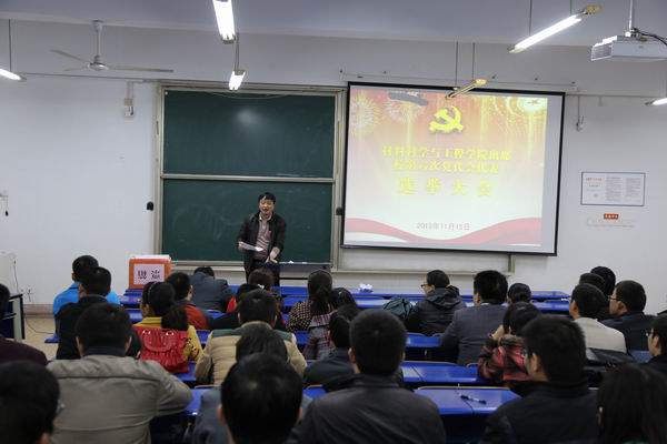 11月15日下午,材料科学与工程学院在新附2205教室召开全院党员大会,选举产生材料科学与工程学院参加校第六次党员大会的代表。会议由学院党委书记何昌珏主持。