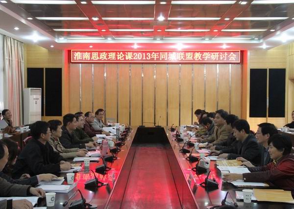 张明旭首先代表安徽理工大学党政对淮南思政理论课同城联盟各高校领导和老师的到来表示热烈的欢迎,对各位领导和老师给予我校思政理论课教学和建设工作的关心、支持和帮助表示真诚的感谢,并在介绍我校思政理论课建设的领导体制、工作机制、机构建设、专项经费、教师培养、职务评聘、经济待遇等方面经验的基础上,对淮南高校思政理论课同城联盟各位老师和联盟的发展提出了殷切期望。张明旭指出,思政理论课教师特别是青年教师一是要进一步增强责任意识、机遇意识和进取意识。目前,我国正处于经济发展的转型期和社会矛盾凸显期,思政理论课教师要明确责任,站稳阵地,而不能在市场经济的大潮中迷失自我;要抓住机遇,努力学习,勤于思考,充分利用各种资源,汲取新知识、新思想,充实内涵,而不能固步自封;要以方永刚、房玫等优秀思政理论课教师为榜样,把学生当朋友,关心热爱学生,引导青年大学生正确理解当前社会现实生活中的不公正现象,真诚地帮助他们成长成才,而不能满足于传授知识。二是思政理论课教师要正确处理好教学和科研之间的关系,努力做好教学和科研工作。思政理论课教师既平凡又伟大。我们的思政理论课教师要热爱本职工作,无怨无悔地做好本职工作,不折不扣地完成教学和科研任务。“科研无禁区,教学有纪律”。思政理论课教师既要在教学上低调谨慎,又要在科研上开拓创新。三是淮南高校思政理论课同城联盟要进一步加强联系,协同发展,努力实现“双赢”和“多赢”,把各校思政理论课教学和建设工作提高到一个新的高度和水平。