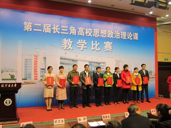 本次大赛由江苏省教育厅承办,中国矿业大学(徐州)协办。比赛设一等奖4名,二等奖10名,三等奖18名,来自上海市、江苏省、浙江省和安徽省的32位思想政治理论课教师经过各省(市)组织的层层选拔,来到了决赛赛场。决赛包括教案及课件设计、15分钟讲课和5分钟回答问题共3个环节。