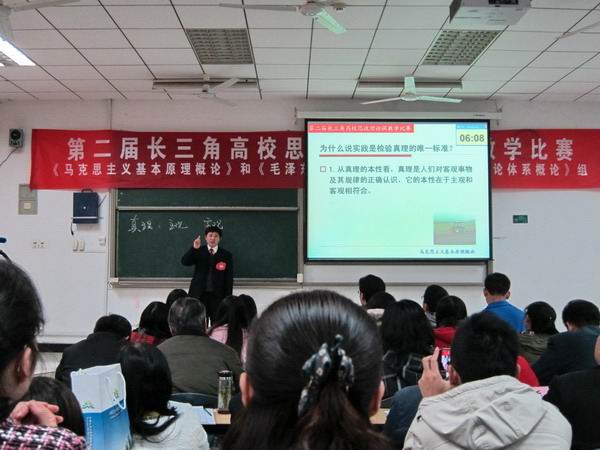 我校思政部王宏兴老师作为我省8位参赛选手之一参加比赛并荣获二等奖。他讲课内容为“马克思主义基本原理概论”课程中的“真理的检验标准”部分。讲课在回溯并评析哲学史上关于真理标准各种观点的基础上,全面而深刻地讲述了“为什么实践是检验真理的唯一标准”这一马克思主义认识论的重大理论问题。他讲课还联系实际,强调了“真理标准大讨论”对重新确立实事求是思想路线,打开改革开放新局面的伟大历史意义,以及坚持这一标准对当前贯彻落实党的十八届三中全会精神和实现中华民族伟大复兴的“中国梦”的重大现实意义。在整个比赛过程中,王宏兴老师沉着自信、精神饱满,讲课内容丰富、条理清楚、注重启发互动,展示了我省思政理论课教师优秀的教学能力和扎实的理论功底,赢得了比赛评委和现场观摩师生的广泛好评。