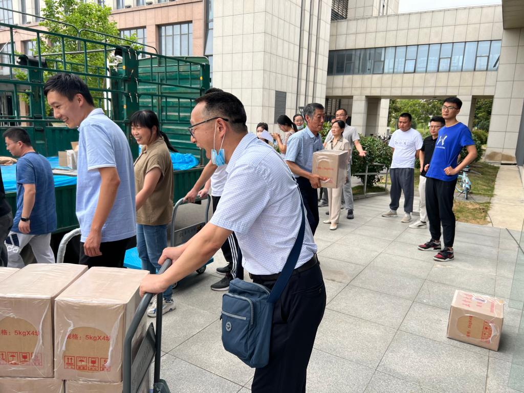为确保发放工作的顺利进行,校工会提前筹划,制订详细的发放方案,确保防疫期间物流配送通畅。一大早,工作人员就协同新华村村民忙碌开来,经过一整天有序的工作,克服天气炎热的困难,最终把一袋袋大米发放到教职工手中。前来领取大米的教职工个个脸上洋溢着满足和幸福,切实感受到学校的亲切关怀,为工作人员的辛苦工作点赞。