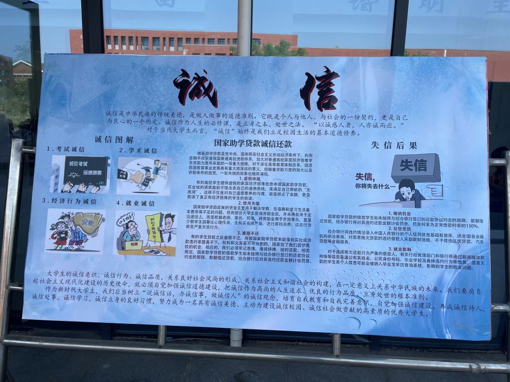 此外,各学院还积极通过线上线下多种渠道引导同学们恪守诚信,以诚信立身,开展了“感恩教育”公益志愿服务、微信公众号诚信专题宣传、反诈骗知识集中学习、主题团日、集中组织全员安装国家反诈APP等教育活动。