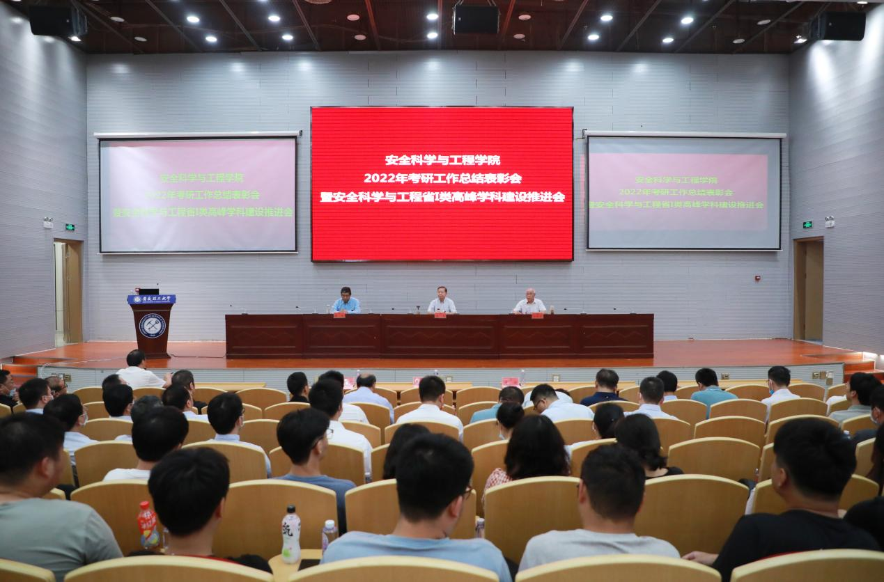 学校就业创业指导中心、科研部、发展规划处、高峰学科相关学院、博士点培育单位学院主要负责人,安全学院全体教职工、2018级考研奖励同学,本科生、硕士生、博士生代表参加会议。