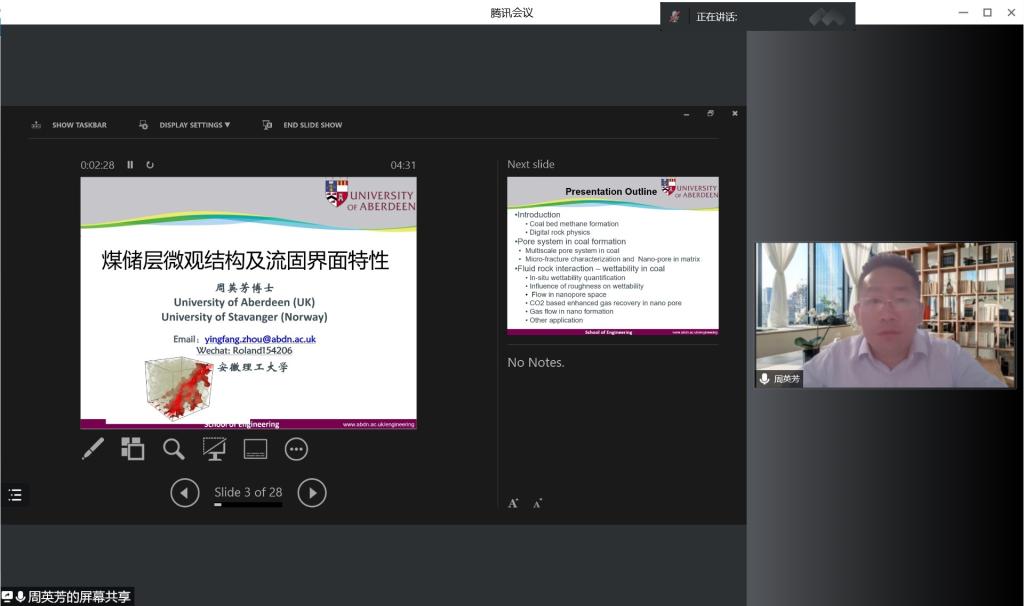 6月11日至12日,由深部煤矿采动响应与灾害防控国家重点实验室、煤炭安全精准开采国家地方联合工程研究中心、波兰AGH University of Science and Technology、澳大利亚University of Wollongong、美国Agapito Associates, Inc.以及安徽理工大学(安全科学与工程学院、矿业工程学院)等6家单位主办,中国矿业大学、英国University of Aberdeen、煤矿瓦斯治理国家工程研究中心、煤炭开采国家工程技术研究院等4家单位协办的“煤层气勘测与开采”国际研讨会,以视频会议的形式在线召开。来自中国、澳大利亚、波兰、美国、波兰等5个国家的196位专家和学者参加了本次会议。