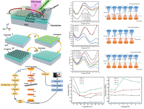 理想石墨烯的狄拉克点,其内部载流子浓度处于平衡状态,但是由于石墨烯掺杂以及粒子运动的无序性,通常使用的P型掺杂的石墨烯不能处于理想状态,其初始费米能级EF0在狄拉克锥的价带中。石墨烯对外部激励敏感,狄拉克点不容易捕捉到,可以通过太赫兹透射谱振幅的变化判断狄拉克点位置。该研究通过泵浦光调制、偏置电压调制、偏置电压与泵浦光联合调制三种手段探测到石墨烯的费米能级在狄拉克点附近的波动,利用石墨烯费米能级在价带、狄拉克点、导带之间移动,解释了透射谱振幅的变化规律,对新一代高效太赫兹光子器件有着潜在的应用价值。