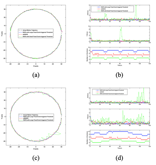 为解决无线传感设备和移动目标(如移动机器人)间协作定位时通信负担重、远距离通信不确定性程度高和计算资源需求大问题,实现高能效、计算复杂度低和鲁棒性好的WSN与移动目标间的协作定位,该论文提出了一种基于集员滤波架构和事件驱动机制的环境自适应事件驱动鲁棒集员融合估计AERSFE方法,用于在运动建模和测量不确定性下基于接收信号强度RSS的移动目标定位或跟踪。与传统事件触发机制的集员滤波方法相比,该论文提出的方法在能效性、通信负担、计算复杂度和定位性能等方面具有显著优势。此外,与传统的定位或跟踪方法相比,该论文对非线性测量模型且包含测量不确定性的拉格朗日余量进行了精确估计,进一步提高了移动目标运动状态的估计性能。根据区间分析理论、线下不等式LMI和解耦技术,通过融合移动目标附近已触发锚点的接受信号强度RSS测量数据,该论文构建了计算复杂度低的环境自适应事件驱动鲁棒集员融合估计AERSFE迭代递归公式。最后,在仿真及实验装置上进行了大量的方法验证,验证结果表面该论文所提出的方法在保证移动目标定位或跟踪性能的前提下,在能效性、通信负担和计算复杂度方面具有一定的优越性。该研究为移动目标(如移动机器人)在无GPS信号环境下的导航与定位技术提供了新思路。