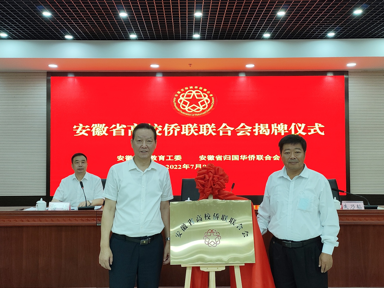 7月8日,安徽省高校侨联联合会成立大会在合肥召开。省侨联党组书记、主席李世蕴,省委教育工委二级巡视员朱乃韬出席会议讲话并为安徽省高校侨联联合会揭牌,省侨联党组成员、专职副主席、一级巡视员杨冰主持会议,省委教育工委、省侨联有关部门负责同志以及在肥高校侨联负责同志参加会议。