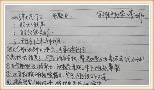 班级记录本:记载同学出勤、班主任晚自习到堂情况,粘贴学生假条