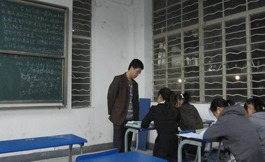 班主任苗成林老师几乎每天到自习室,帮助学生答疑解惑。