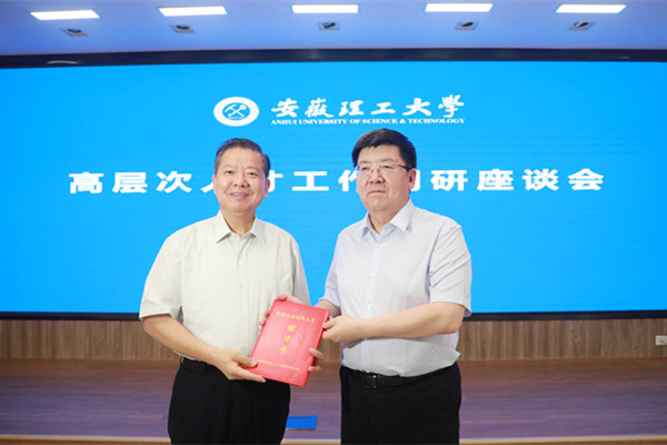 7月20日上午,淮南市委书记任泽锋来校调研人才工作,市校双方在学校舜耕苑二楼会议室召开高层次人才工作调研座谈会。校党委书记郭永存,党委副书记、校长袁亮,市委常委、组织部部长马文革,市委秘书长、一级巡视员胡东辉陪同调研。校党委常委、副校长宫能平出席座谈会。