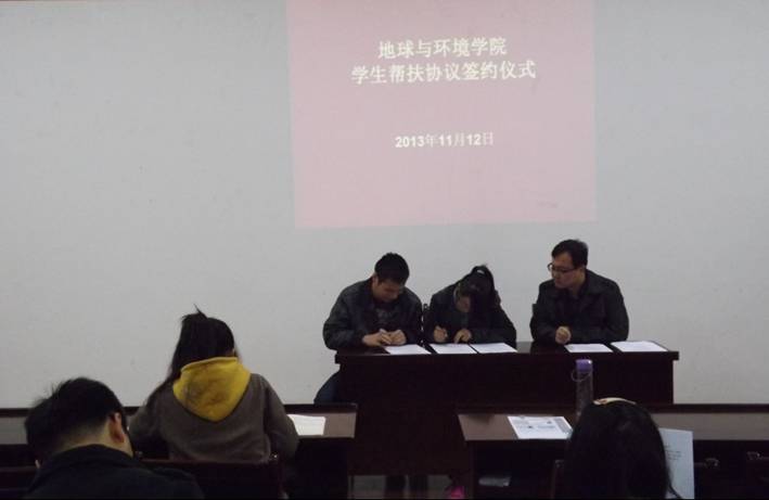 高年级获得国家奖学金、国家励志奖学金、校级奖学金的学生,与受到学业预警或存在其它学习困难的学生结成帮扶对子,发挥优秀学生的“传、帮、带”作用。截止目前,地球学院2010、2011、2012三个年级共150多对学生签订帮扶协议书。采取分散与集中相结合帮扶方式,组成帮扶小组,以班级为单位由帮扶者与被帮扶者按个人的意愿自由组合形成多个学习帮扶小组。确定帮扶计划,依据学期课程安排确定帮扶的内容和时间,帮扶者利用课余时间或晚自习帮助被帮扶者解决在弱势学科中存在的学习问题,并帮助指导他们选择合适的学习方法。明确帮扶纪律,规定学习帮扶小组成员每周在课外时间一起学习至少三次,由组长做好考勤;每个成员应按时参加活动,要做到不迟到、早退或缺席,如遇特殊情况,小组成员须事先向帮扶组长请假;帮扶者与被帮扶者定期总结工作开展情况,遇到问题或困难及时向辅导员报告。加强监督考核,组长负责组织监督本小组的学习,各个班委成员也要督促各帮扶小组活动的开展,对于帮扶效果显著的小组以及小组中成绩进步快的同学,学院给予一定的表扬奖励,评优时优先考虑;对于帮扶效果不明显的小组,小组成员要一起查找原因,共同商讨更好的学习帮扶方案,从而达到共同进步的目的。对于在学习过程中遇到的难题,各帮扶小组定期收集并及时向任课老师请教,或者是请任课老师在课余时间为他们进行集中讲授。