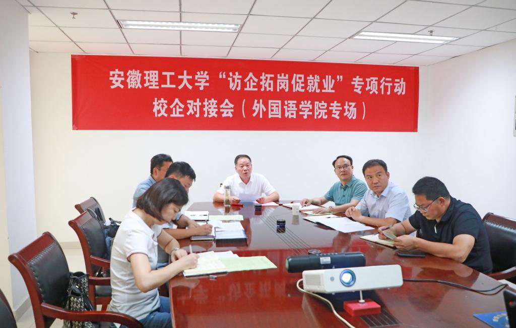 “2023年我们将面向安徽理工大学招聘280名毕业生”“我们有稳定的海外市场,长期有英语、日语专业毕业生用人需求,希望校企双方进一步加强合作”。7月26日下午,安徽理工大学“访企拓岗促就业”专项行动校企对接会(外国语学院专场)气氛热烈,6家单位现场表达了与学校及学院加强交流合作的积极意愿。