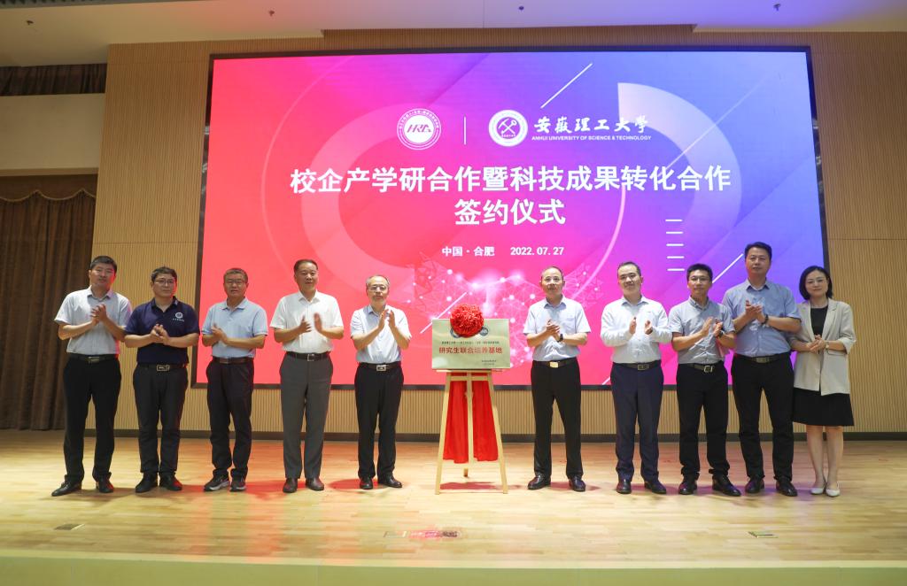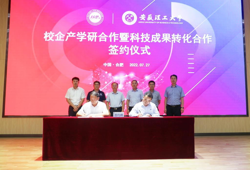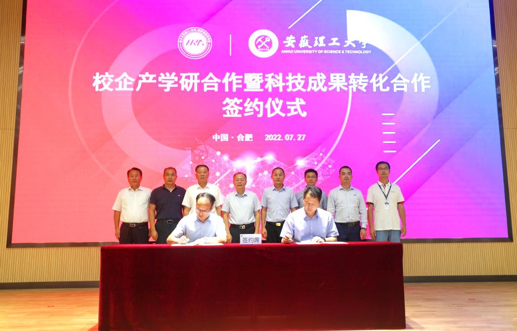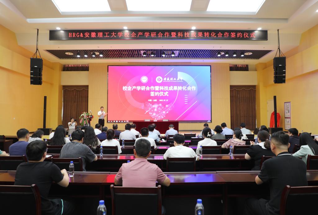 仪式上,宫能平、刘速超代表双方签订校企产学研合作、成果转化协议书。学校就业中心主任黄胜龙与HRG合肥有限公司总经理、工会主席李旭东代表双方签订校企共建就业实习基地协议书。根据协议,双方将坚持以科技创新为导向,充分发挥各自技术、人才和平台优势,积极推进国家、省、市各级相关重大科技专项和重点科技计划项目联合申报。同时,重点围绕机器人、人工智能、智能装备、工业软件、光电传感等产业领域,以联合研发、委托研发、揭榜挂帅、供需对接等形式开展技术研发、场景落地及产业化合作。双方将强强联手,推动高校科技成果转移转化,共同培育和造就一批领军型科技企业,打造渠道畅通、转化高效、成果丰硕的成果转化先进示范样本和典范。