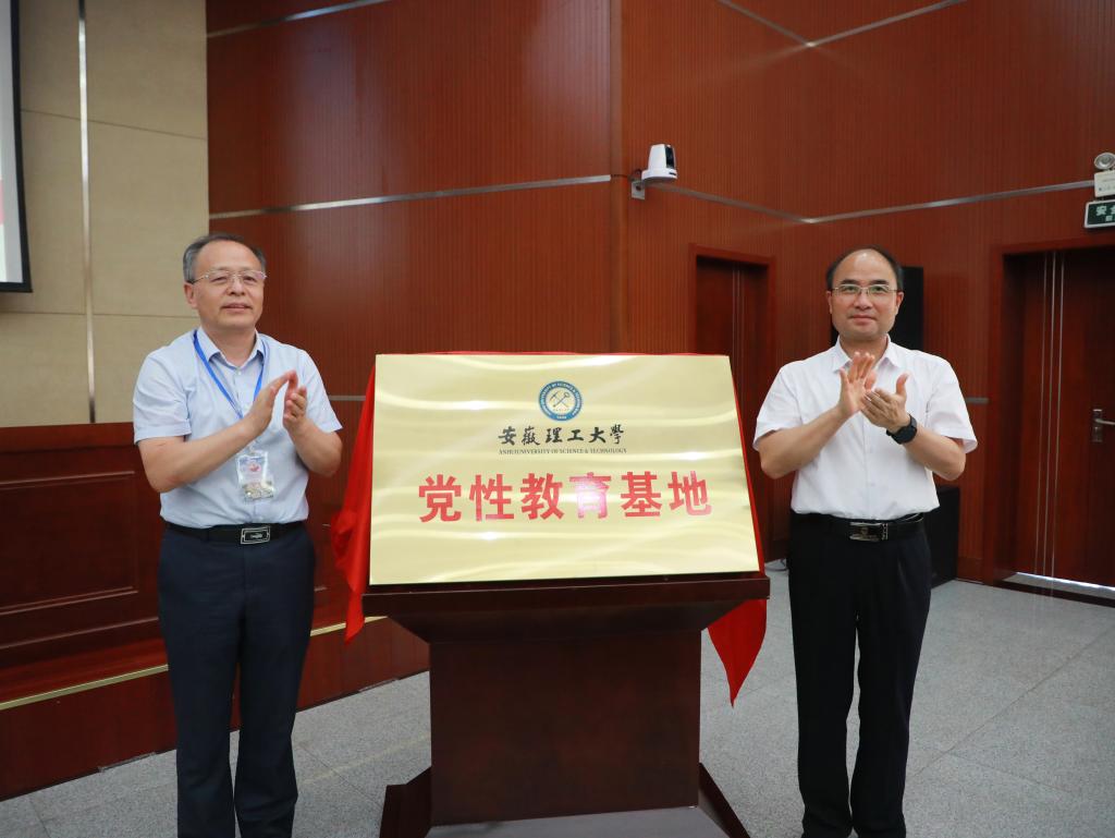 开班式上,郭永存与张涧为“安徽理工大学党性教育基地”揭牌。