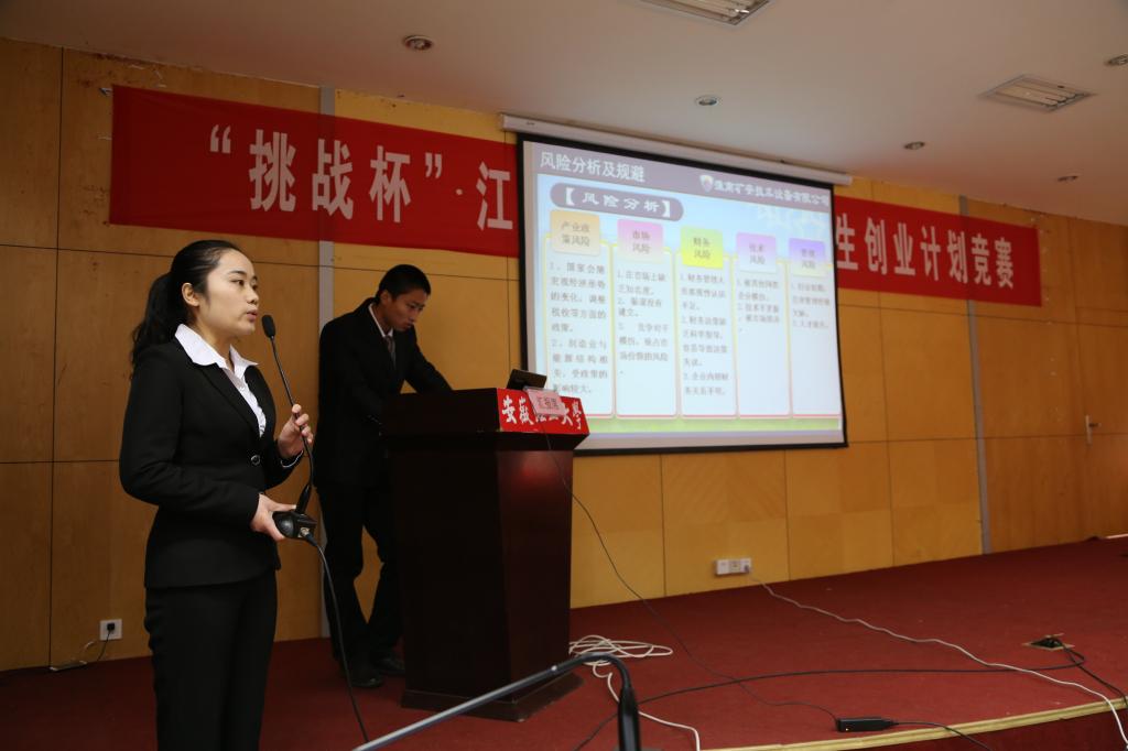 12月20日,“挑战杯”·江南化工安徽理工大学第六届大学生创业计划大赛校内终审决赛在校本部图书馆北会议室举行,经过院级初赛、校级复赛选拔的35支创业团队参加了金银铜奖的角逐。