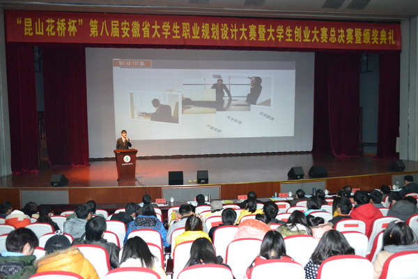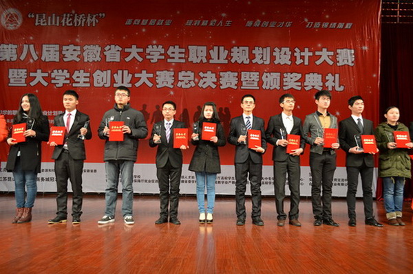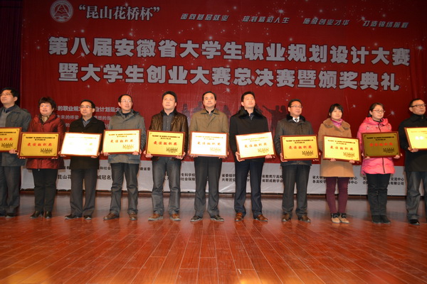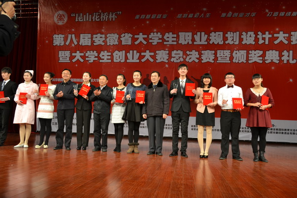 12月21日—22日,“昆山花桥杯”第八届安徽省大学生职业规划设计大赛暨大学生创业大赛总决赛暨颁奖典礼在安徽医学高等专科学校举行。经过两天激烈的角逐,我校经济与管理学院李沫天同学获得“安徽省大学生职业规划之星”金奖、“淮南市超越教育咨询有限公司”创业团队获得“安徽省大学生创业之星”银奖、外国语学院孔健梅同学获得“安徽省大学生职业规划之星”铜奖。学校获得“最佳组织奖”。省教育厅副厅长杨德林出席颁奖典礼并发表重要讲话,省人力资源和社会保障厅副厅长刘少华出席。