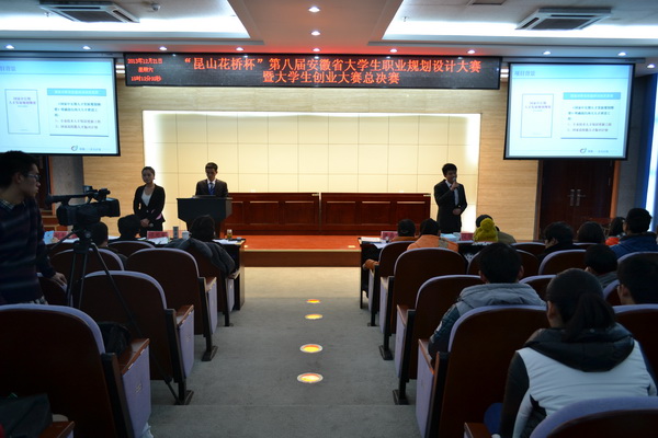 大赛由省教育厅、省人力资源和社会保障厅、共青团安徽省委联合主办,以“面向基层就业,规划精彩人生;施展创业才华,打造锦绣前程”为主题。参赛选手们经过计划书评审,无领导小组讨论,PPT展示汇报,职业角色模拟视频、创业实战情景视频等环节的比赛,展现了将个人发展与国家、社会需要相结合,面向基层就业创业热情,展现了当代大学生积极向上的精神风貌。