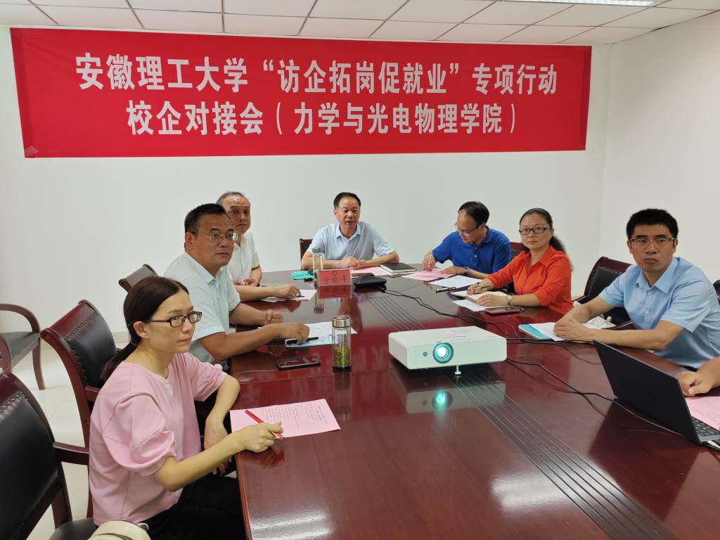 为深入贯彻落实党中央、国务院关于高校毕业生就业工作的决策部署,不断拓宽毕业生就业渠道,推动毕业生更高质量就业,进一步搭建校企合作平台,8月16日上午,学校“访企拓岗”专项行动校企对接会(力学与光电物理学院专场)在舜耕楼1103会议室举行。