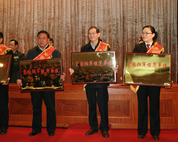 12月26日上午,安徽省双拥模范城(县)命名暨双拥模范单位和个人表彰大会在合肥隆重举行。我校荣获安徽省“爱国拥军模范单位”荣誉称号。副校长王其东出席表彰大会并代表学校登台领奖。