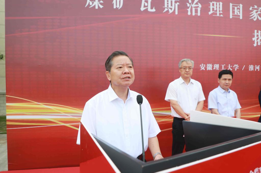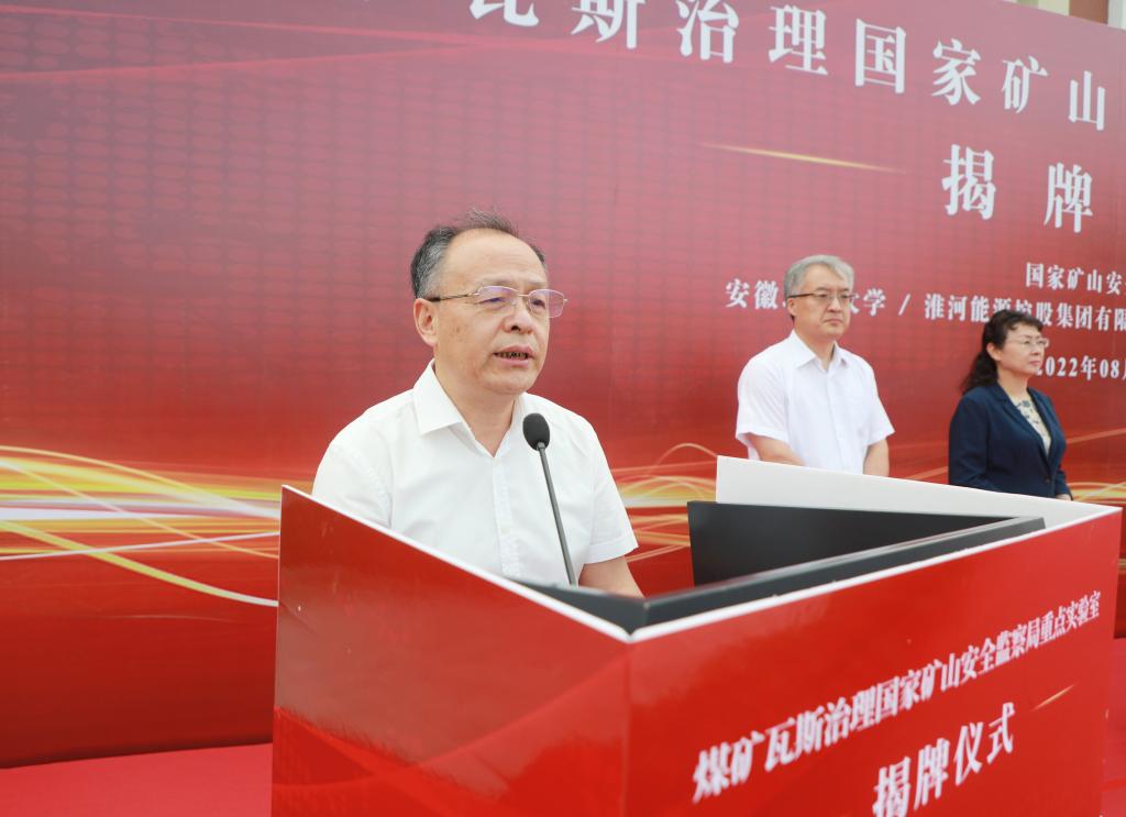 国家矿山安全监察局党组成员、副局长周德昶,国家矿山安全监察局监察专员王素锋,国家矿山安全监察局法规科技司二级巡视员王铁根,国家矿山安全监察局安徽局党组书记、局长许胜铭,安标国家中心党总支书记、执行董事朱凤山,安徽省能源局煤矿安全监管处处长方恒林,淮河能源集团副总经理牛多龙,校党委书记郭永存,党委副书记、校长袁亮院士,党委常委、副校长郑明东等出席揭牌仪式。揭牌仪式由王铁根主持。