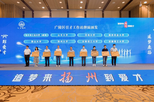 活动现场,扬州市副市长余珽致辞。他表示扬州将拿出最真诚的态度、最温暖的政策、最务实的行动,为广大高校毕业生来扬就业提供全方位的服务和保障,同时希望各地高校老师成为扬州的“引才大使”,为扬州“代言”,与“好地方”扬州一道,共创美好未来。沿江八市人才中心负责人分别向全国各大高校推介了各市优质的人才政策环境、城市发展水平、地方优惠政策、校园引才计划等,并表示校地之间要进一步加强沟通交流、深化务实合作,促进互利共赢,努力为长江经济带建设和长三角一体化发展作出新的更大贡献。我校作为扬州市人才供需长期合作高校被授予“引才工作站”牌匾。