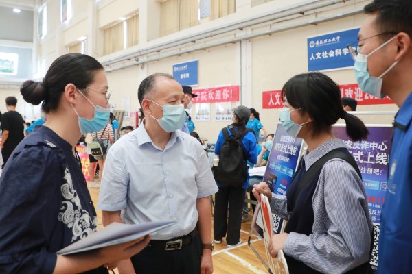 “老家哪里的,怎么过来的?”“新生行李多,消杀要确保彻底、有效。”“一名新生完成报到大约需要多长时间?”9月11日上午,校党委书记郭永存深入迎新现场检查指导工作,看望慰问迎新工作人员、学生志愿者以及来自全国各地的新生。校党委常委、副校长宫能平陪同检查指导。