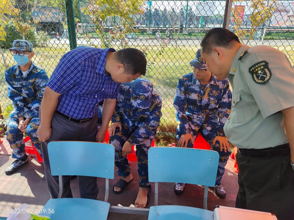 9月22日上午,校党委常委、副校长、医学部主任鲁超在党委武装部负责人陪同下来到2022级新生军训现场,看望慰问一线军训教官、参训学生、各学院值班人员及医疗保障人员,了解参训学生的训练情况。