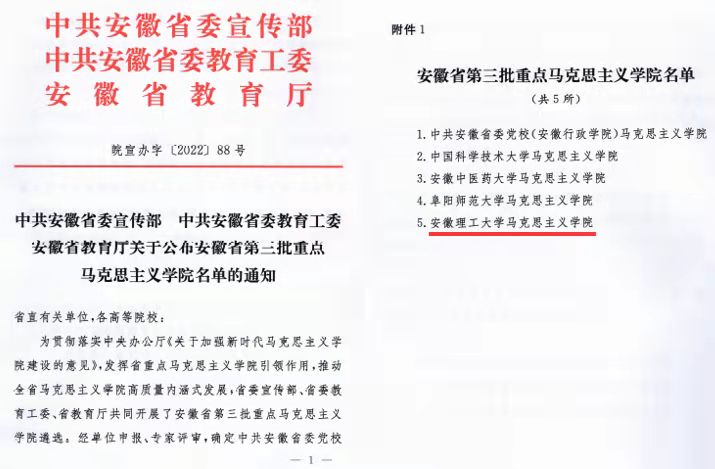 近日,中共安徽省委宣传部、中共安徽省委教育工委、安徽省教育厅公布了安徽省第三批重点马克思主义学院名单,我校马克思主义学院成功入选。